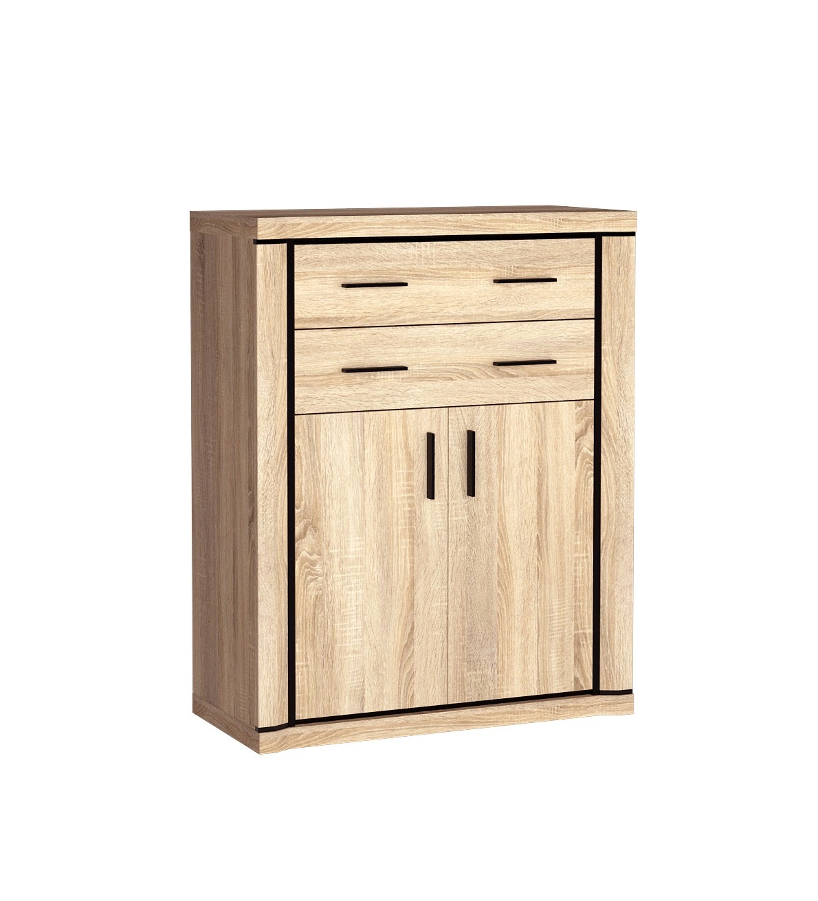 Komoda do salonu skonstruowana jest z 2 drzwi oraz 2 szuflad. Komoda do salonu gwarantuje komfortowe i bezproblemowe korzystanie oraz trwałość całego mebla przez wiele lat użytkowania. Ciepłe wybarwienie dębu nada pomieszczeniu lekkości i przytulnego klimatu, dzięki czemu komoda wysoka Dallas świetnie sprawdzi się w roli komody do salonu lub komody do pokoju dziennego. Komoda z powodzeniem odnajdzie się także jako mebel biurowy lub komoda do sypialni.