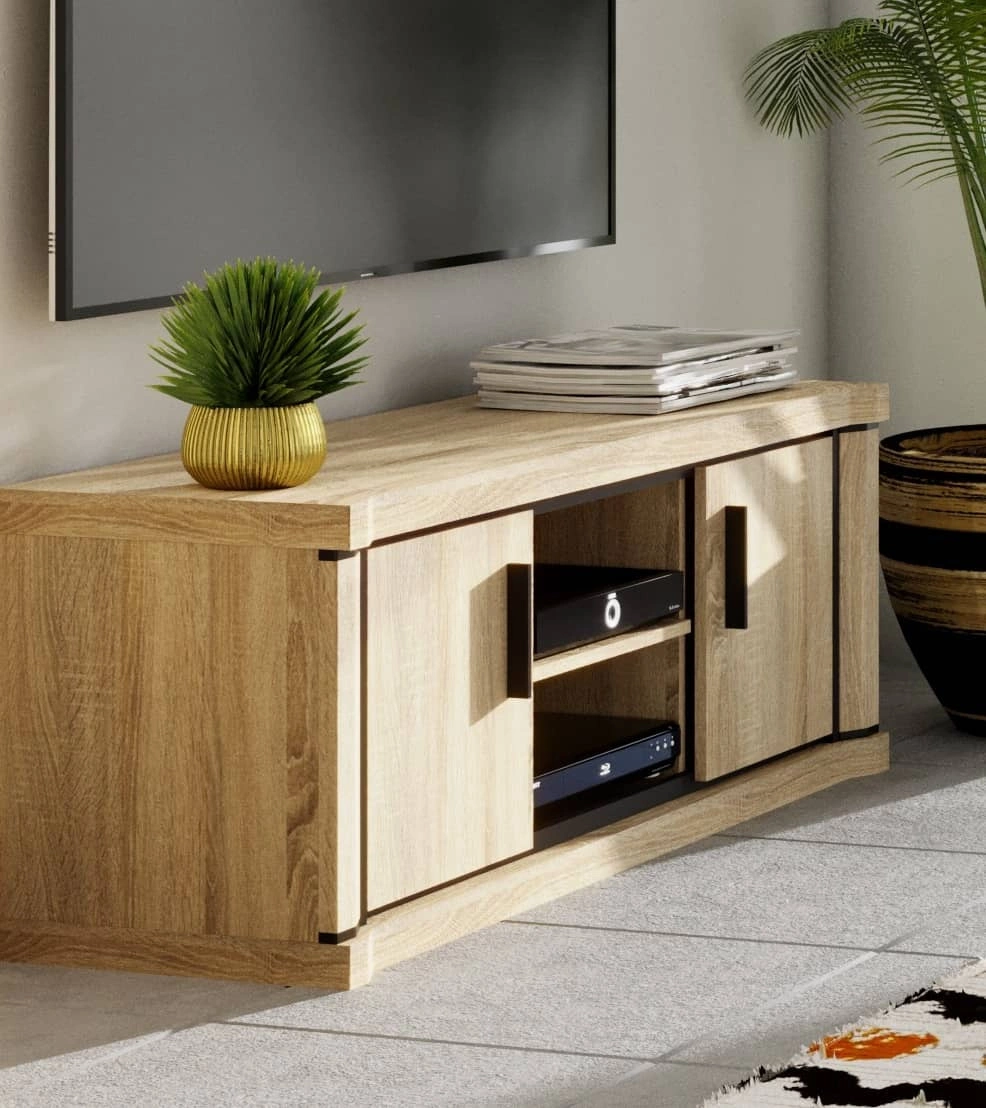 Szafka pod telewizor skonstruowana jest z 2 drzwi oraz półek otwartych. Wnęki w szafce są świetnym miejscem na sprzęt rtv lub konsolę do gier. Szafka RTV gwarantuje komfortowe i bezproblemowe korzystanie oraz trwałość całego mebla przez wiele lat użytkowania. Ciepły odcień dębu nada pomieszczeniu lekkości i przytulnego klimatu, dzięki czemu szafki RTV Dallas świetnie sprawdzą się w przestronnych, jasnych wnętrzach w stylu nowoczesnym. Szafki RTV nowoczesne oraz szafki RTV industrialne o eleganckim wykończeniu idealnie dopasują się do każdej aranżacji.
