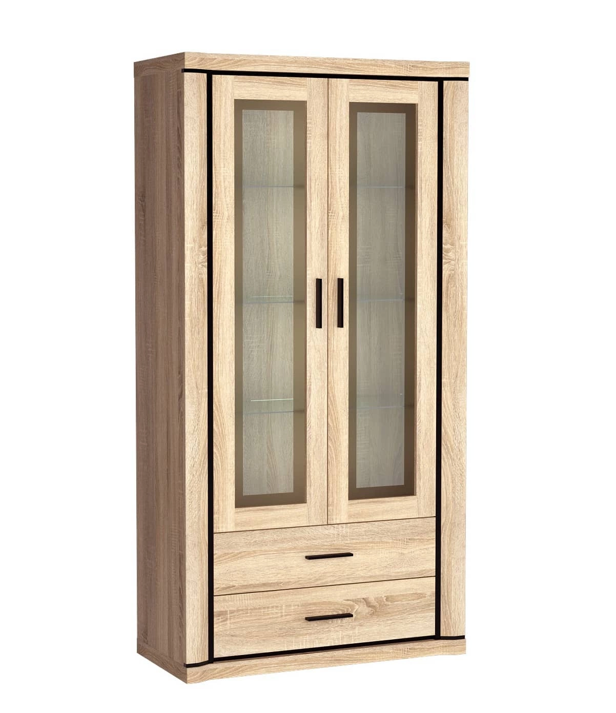 Witryna jest skonstruowana 2 drzwi i 2 szuflad. Witryna z szufladami wykonana została z wysokiej jakości płyty laminowanej, która charakteryzuje się odpornością na wpływ czynników zewnętrznych takich jak obicia, uderzenia i niefortunne zadrapania. Dzięki prostej formie oraz uniwersalności witryny szklane Dallas świetnie sprawdzą się w roli witryny do salonu, witryny do pokoju dziennego lub witryny do jadalni, a także witryny na książki.