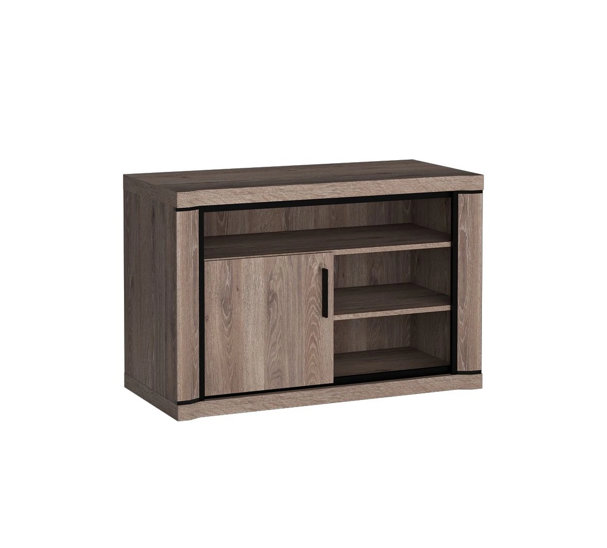 Szafka RTV Dallas 107 cm dąb truflowy / czarny elegancka stylistyka mebla wzbogacona o stylowe czarne dodatki szafka z drzwiami