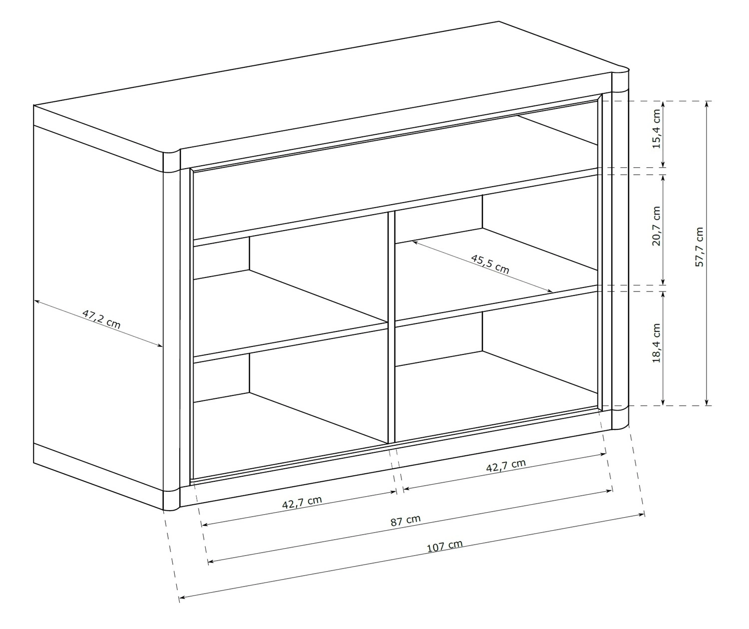 Szafka pod telewizor skonstruowana jest z 1 drzwi oraz półek otwartych. Wnęki w szafce są świetnym miejscem na sprzęt rtv lub konsolę do gier. Szafka RTV gwarantuje komfortowe i bezproblemowe korzystanie oraz trwałość całego mebla przez wiele lat użytkowania. Kontrastowa i wyrazista kolorystyka świetnie odnajdzie się w klasycznych aranżacjach, dzięki czemu szafki RTV Dallas świetnie sprawdzą się w przestronnych, jasnych wnętrzach w stylu nowoczesnym. Szafki RTV nowoczesne oraz szafki RTV industrialne o eleganckim wykończeniu idealnie dopasują się do każdej aranżacji.