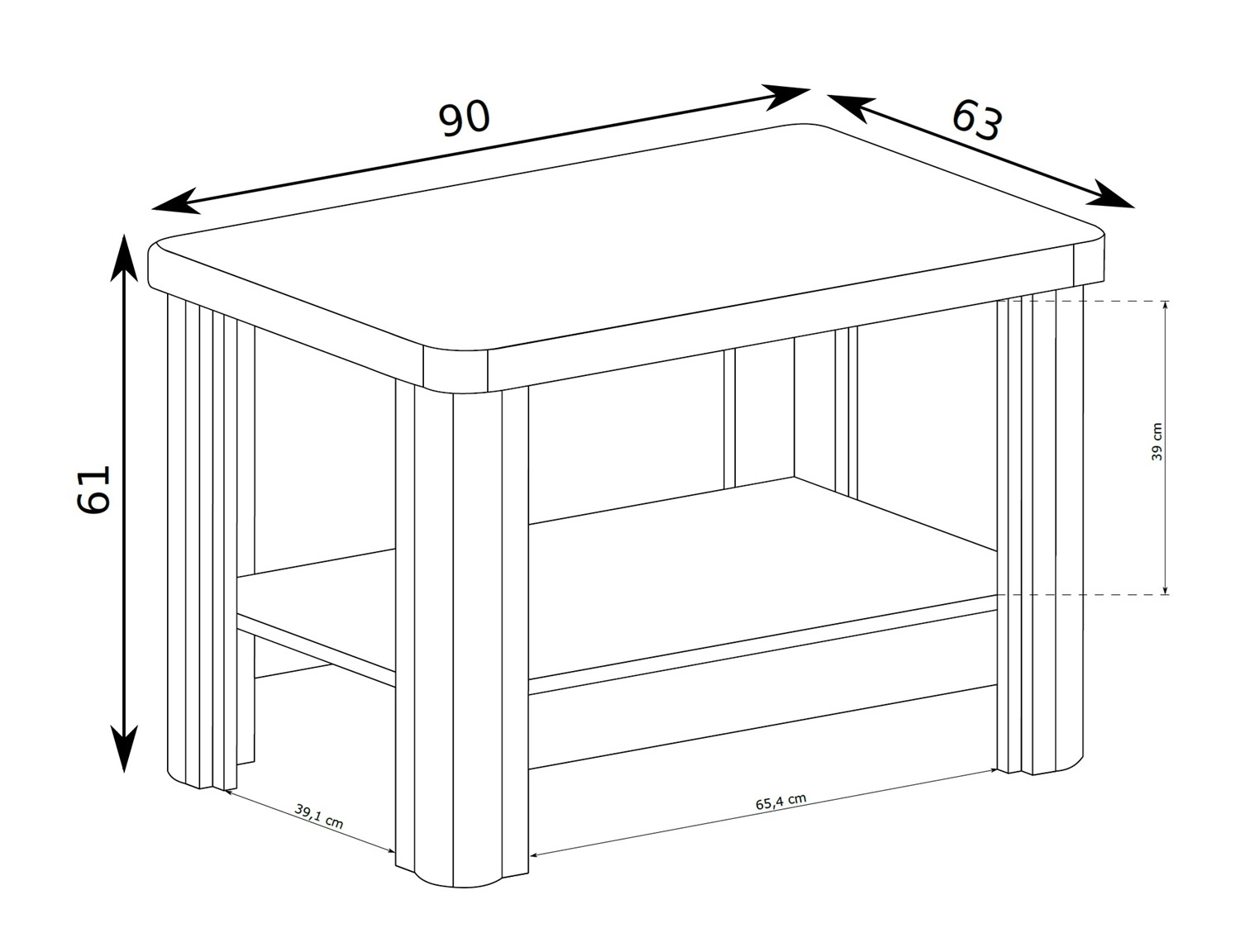 Stolik wykonany z płyty meblowej to gwarancja trwałości i stabilności przy jednoczesnym utrzymaniu funkcjonalności. Półka znajdująca się poniżej blatu zapewnia dodatkową przestrzeń na ulubione książki lub czasopisma. Stolik kawowy gwarantuje komfortowe i bezproblemowe korzystanie oraz trwałość całego mebla przez wiele lat użytkowania.