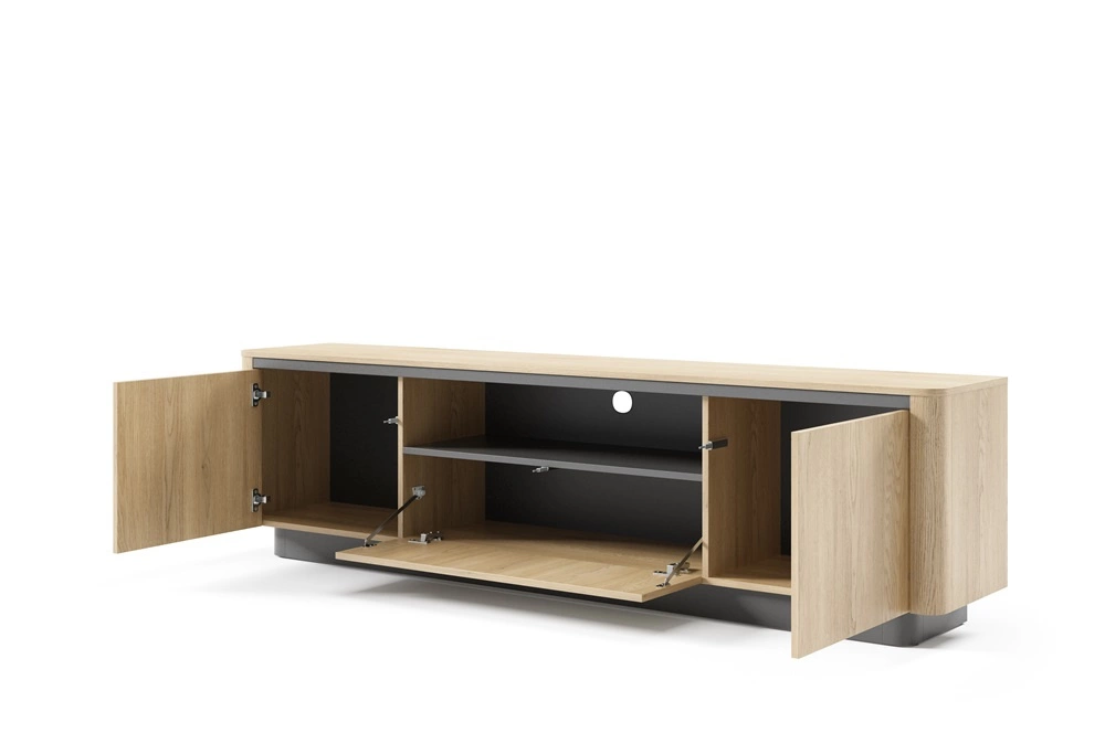 Szafka RTV Torro 200 cm dąb cremona / czarny stylowa szafka pod telewizor w modnym stylu zaoblone krawędzie stabilna podstawa