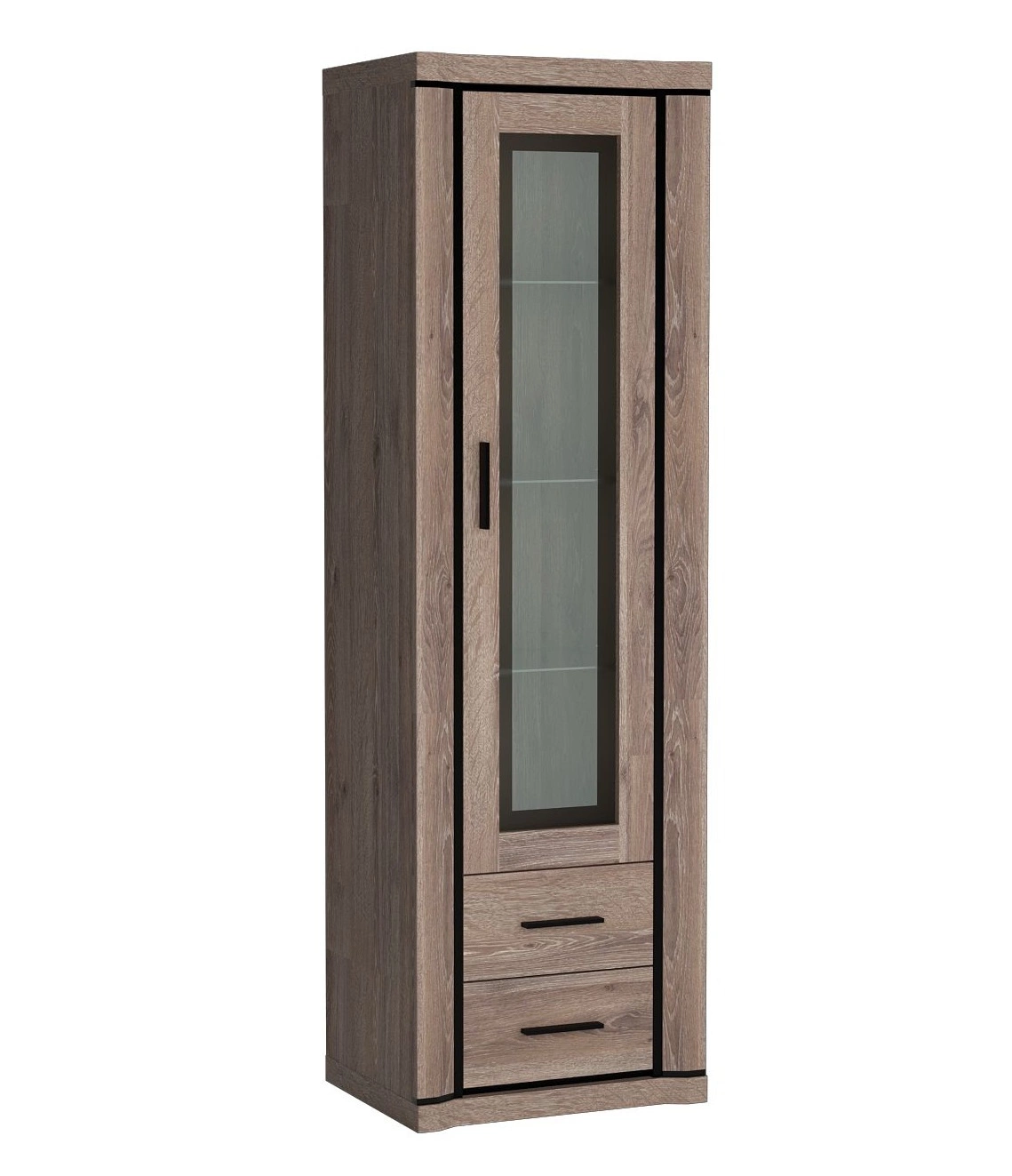 Zestaw mebli do salonu Dallas łączy w sobie funkcjonalność z niezwykle wyjątkowym designem. Ciekawe zestawienie ciemnego dekoru drewna z wstawkami w kolorze czarnym nadaje meblom nowoczesnego wyglądu i kontrastu. Oryginalny kształt mebli oraz uchwyty wykonane z solidnego tworzywa w kolorze czarnym to element, który przyciągają wzrok i sprawia, że całość prezentuje się bardzo gustownie. Obecność mebli z kolekcji Dallas stanie się stylowym wykończeniem salonu oraz nada niepowtarzalnego klimatu. Komplet mebli z powodzeniem odnajdzie się we wnętrzach w stylu klasycznym jak i nowoczesnym.