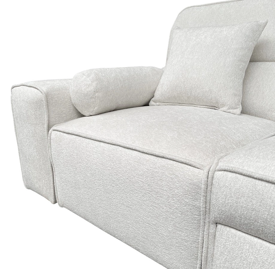 Narożnik z funkcją spania Viano XI kremowy prawostronny modny i stylowy narożnik z regulowanymi zagłówkami ozdobne poduszki