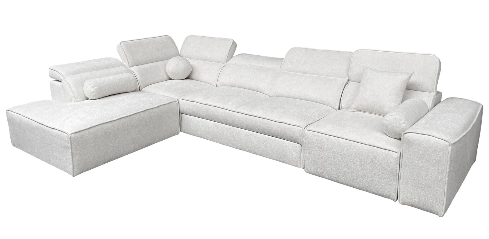 Narożnik z funkcją spania Viano XI jasny brąz lewostronny modny i stylowy narożnik z regulowanymi zagłówkami ozdobne poduszki