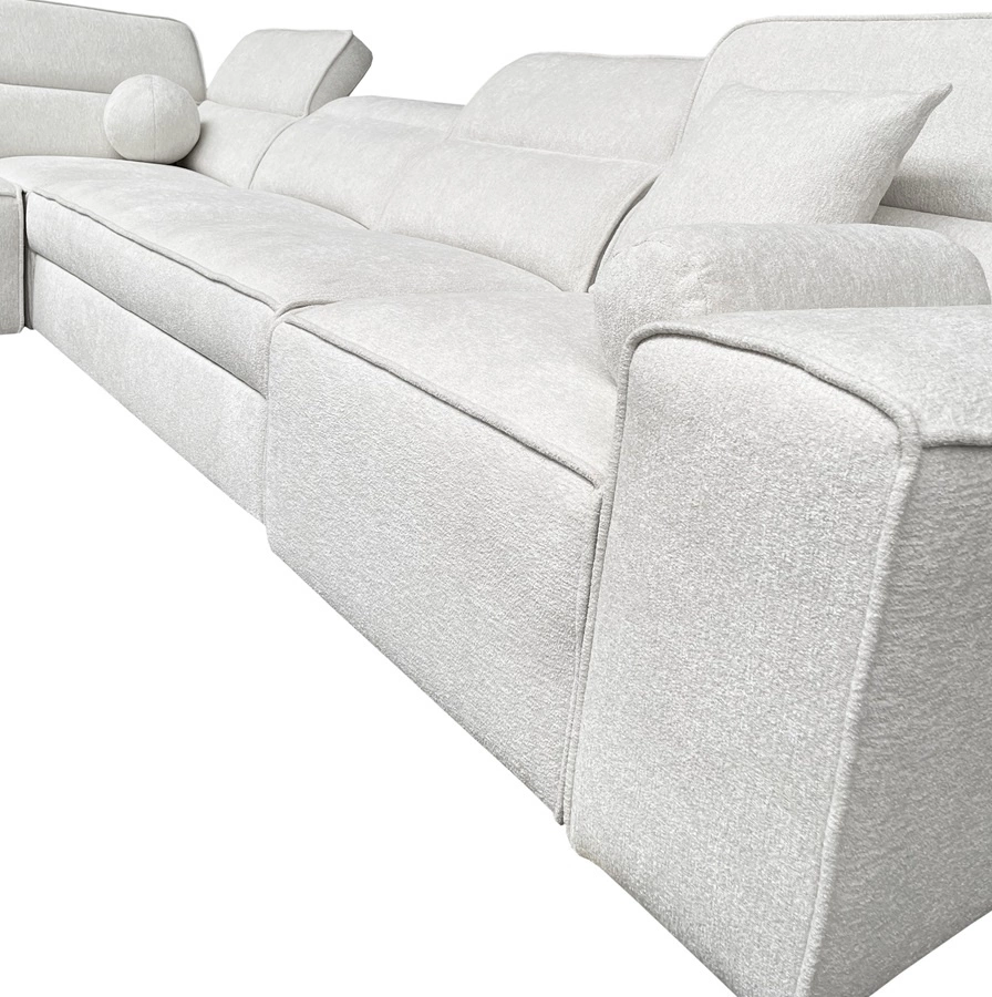 Tkanina obiciowa Toro charakteryzuje się połączeniem przędzy boucle oraz szenilowej, co nadaje tkaninie obiciowej wyjątkowego, szlachetnego wyglądu. Materiał ten jest nie tylko estetyczny, ale również niezwykle miękki. Przyjemna w dotyku powierzchnia zapewnia komfort użytkowania, a zarazem nadaje wyjątkowego, ekskluzywnego charakteru. Tkanina jest trudnopalna, a także wykazuje wysoką odpornością na ścieranie. Materiał obiciowy Toro cechuje się także wysoką odporność na płowienie co idealnie sprawdza się przy bardzo nasłonecznionych aranżacjach wnętrz. Dzięki temu narożnik przez długi czas będzie wyglądał estetycznie i elegancko. Narożnik wykonany został z wysokiej jakości materiałów, które charakteryzują się odpornością na wpływ czynników zewnętrznych takich jak obicia mebla oraz różnego typu uderzenia.