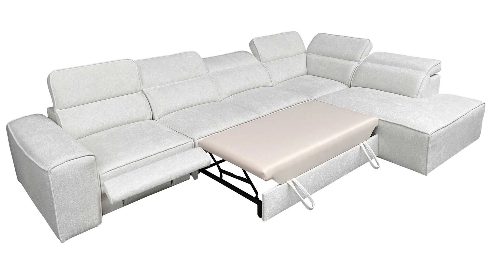 Dodatki tego mebla, które docenią wszyscy użytkownicy to wysuwany podnóżek, pojemnik na pościel, regulowane zagłówki, szerokie podłokietniki oraz poduszki ozdobne w różnych kształtach.
