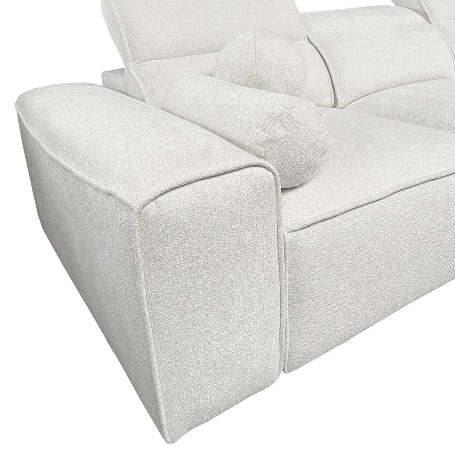 Tkanina obiciowa Toro charakteryzuje się połączeniem przędzy boucle oraz szenilowej, co nadaje tkaninie obiciowej wyjątkowego, szlachetnego wyglądu. Materiał ten jest nie tylko estetyczny, ale również niezwykle miękki. Przyjemna w dotyku powierzchnia zapewnia komfort użytkowania, a zarazem nadaje wyjątkowego, ekskluzywnego charakteru. Tkanina jest trudnopalna, a także wykazuje wysoką odpornością na ścieranie. Materiał obiciowy Toro cechuje się także wysoką odporność na płowienie co idealnie sprawdza się przy bardzo nasłonecznionych aranżacjach wnętrz. Dzięki temu narożnik przez długi czas będzie wyglądał estetycznie i elegancko. Narożnik wykonany został z wysokiej jakości materiałów, które charakteryzują się odpornością na wpływ czynników zewnętrznych takich jak obicia mebla oraz różnego typu uderzenia.