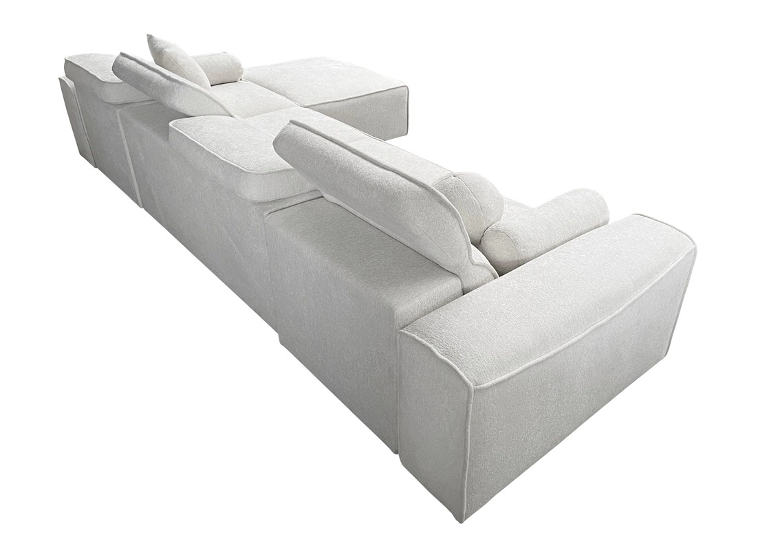 Narożnik z funkcją spania Viano XII wyróżnia się niezwykłą uniwersalnością, dzięki czemu doskonale sprawdzi się w wielu aranżacjach wnętrz. Elastyczność bryły oraz designerskie dodatki pozwalają na dopasowanie narożnika do różnych stylów aranżacyjnych, od klasycznych, po nowoczesne. Oryginalna konstrukcja narożnika pokryta została tkaniną typu szenil Toro 120. Narożnik charakteryzuje się nietuzinkowym wyglądem podkreślonym prostym kształtem, wyjątkowo miękkim i wygodnym siedziskiem oraz wysoką jakością wykonania. Gładkie wykończenie całej konstrukcji sprawia, że kompozycja narożnika jest spójna, zamknięta w minimalistycznym tonie. Ozdobne poduszki zapewnią jeszcze większy komfort i wygodę użytkowania tego niezwykle modernistycznego narożnika. Nowoczesne wzornictwo narożnika oraz bogata gama barw umożliwia swobodne kreowanie przestrzeni, oferując wybór zarówno stonowanych, eleganckich tonacji, jak i bardziej wyrazistych, odważnych kolorów, które wprowadzą życie do każdego pomieszczenia.