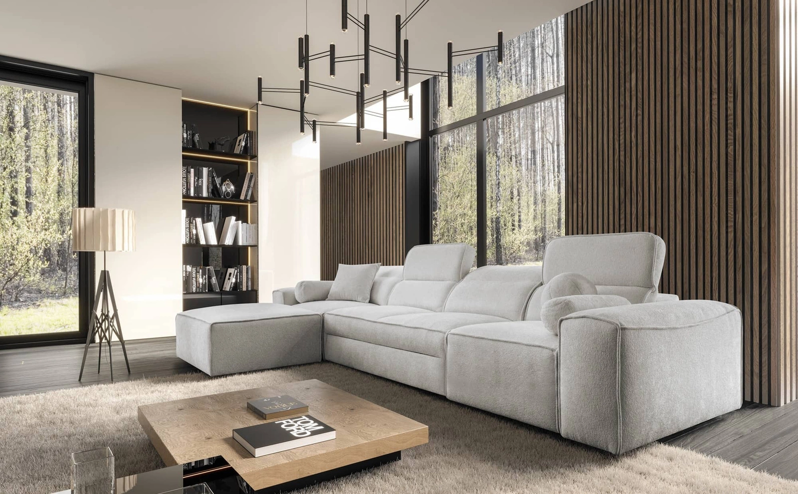 Narożnik z funkcją spania Viano XII wyróżnia się niezwykłą uniwersalnością, dzięki czemu doskonale sprawdzi się w wielu aranżacjach wnętrz. Elastyczność bryły oraz designerskie dodatki pozwalają na dopasowanie narożnika do różnych stylów aranżacyjnych, od klasycznych, po nowoczesne. Oryginalna konstrukcja narożnika pokryta została tkaniną typu szenil Toro 15. Narożnik charakteryzuje się nietuzinkowym wyglądem podkreślonym prostym kształtem, wyjątkowo miękkim i wygodnym siedziskiem oraz wysoką jakością wykonania. Gładkie wykończenie całej konstrukcji sprawia, że kompozycja narożnika jest spójna, zamknięta w minimalistycznym tonie. Ozdobne poduszki zapewnią jeszcze większy komfort i wygodę użytkowania tego niezwykle modernistycznego narożnika. Nowoczesne wzornictwo narożnika oraz bogata gama barw umożliwia swobodne kreowanie przestrzeni, oferując wybór zarówno stonowanych, eleganckich tonacji, jak i bardziej wyrazistych, odważnych kolorów, które wprowadzą życie do każdego pomieszczenia.