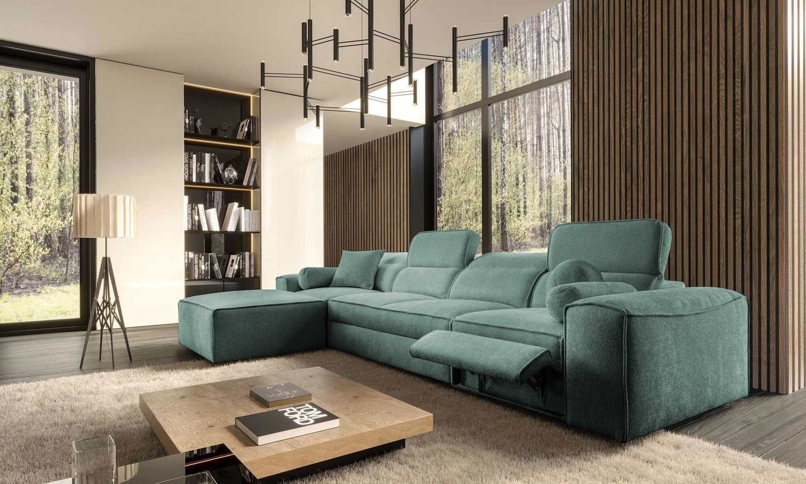 Dodatki tego mebla, które docenią wszyscy użytkownicy to wysuwany podnóżek, pojemnik na pościel, regulowane zagłówki, szerokie podłokietniki oraz poduszki ozdobne w różnych kształtach.