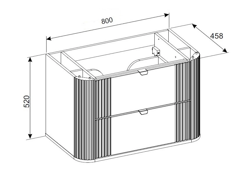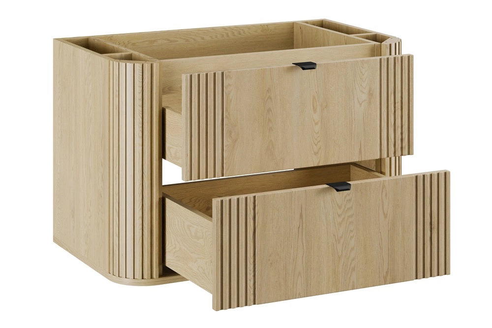 Szafka pod umywalkę Ovalia Cremona 80 cm dąb cremona stylowa szafka z szufladami zaokrąglony kształt dekoracyjne pionowe ryflowania