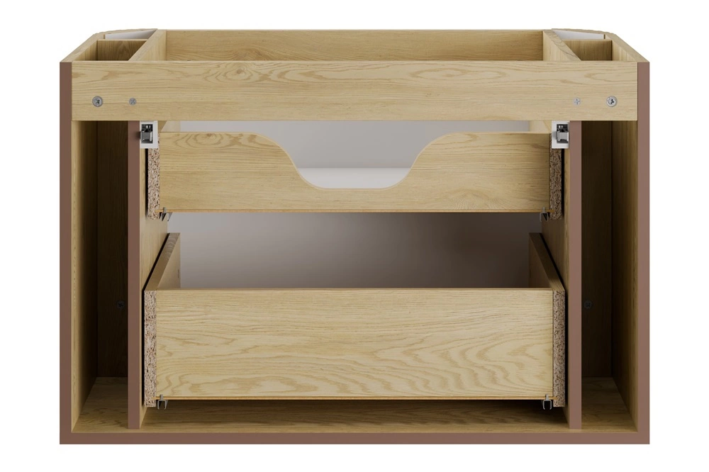 Szafka łazienkowa jest wyposażona w dwie szuflady. Komfort użytkowania podnoszą zastosowane w szufladach prowadnice z funkcją cichego domykania, dzięki którym szuflady zamykają się cicho i łagodnie. W celu łatwiejszego montażu odpływu, górna szuflada ma wcięcieWszystkie elementy kolekcji Ovalia Cremona wyróżniają się starannym wykonaniem i dbałością o detale, gwarantując estetyczny wygląd i długotrwałą satysfakcję z użytkowania.