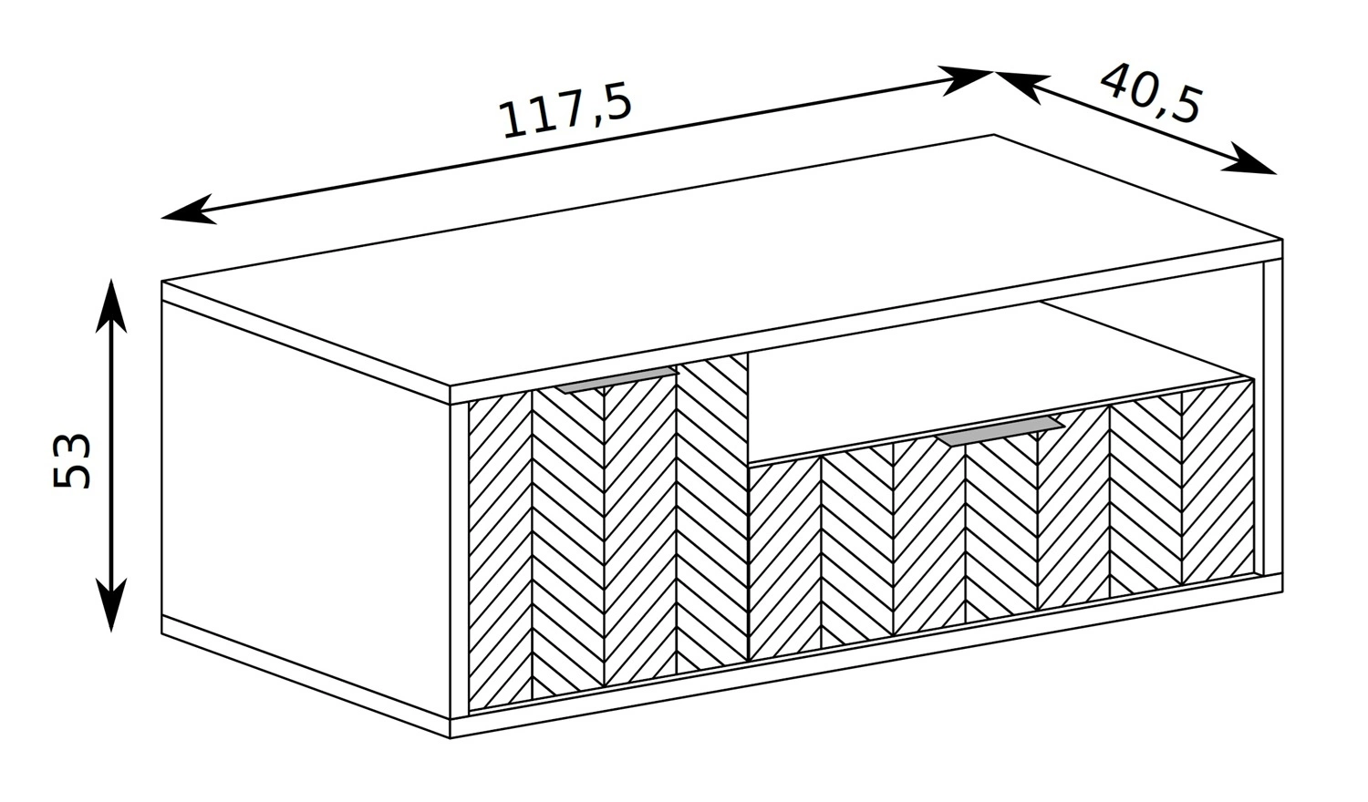 Szafka pod telewizor z kolekcji Fonti to mebel o wyraźnych, geometrycznych kształtach oraz harmonijnych proporcjach. Naturalny i ciepły odcień karmelowego dębu doskonale odnajdzie się w każdym wnętrzu, nadając przy tym przytulnego klimatu. Oryginalny wzór na frontach w postaci czarnej jodełki stanowi elegancki detal przyciągający wzrok. Nietuzinkowym wykończeniem szafki RTV z kolekcji Fonti są niepowtarzalne czarne brzegi, a także stylowe uchwyty krawędziowe, które dodatkowo podkreślają innowacyjność bryły. Szafka pod telewizor Fonti z powodzeniem odnajdzie się we wnętrzach w stylu skandynawskim i nowoczesnym.