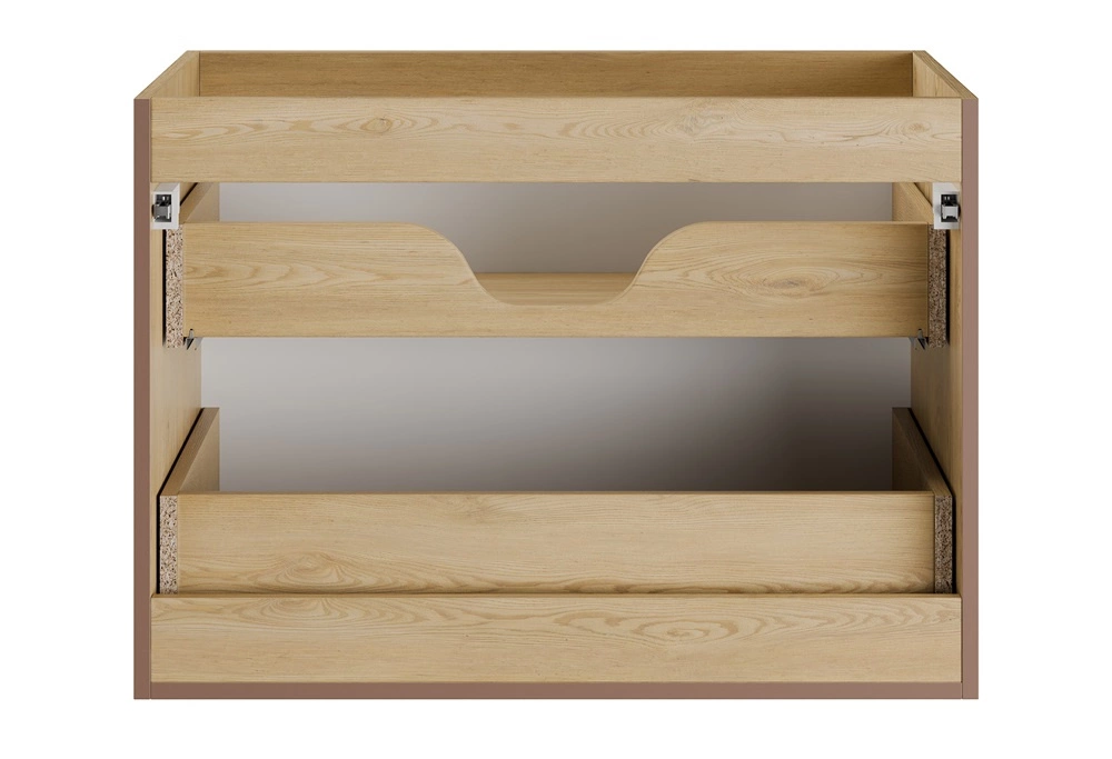 Szafka łazienkowa jest wyposażona w dwie szuflady. Komfort użytkowania podnoszą zastosowane w szufladach prowadnice z funkcją cichego domykania, dzięki którym szuflady zamykają się cicho i łagodnie. W celu łatwiejszego montażu odpływu, górna szuflada ma wcięcie. Wszystkie elementy kolekcji Nordic Cremona wyróżniają się starannym wykonaniem i dbałością o detale, gwarantując estetyczny wygląd i długotrwałą satysfakcję z użytkowania.