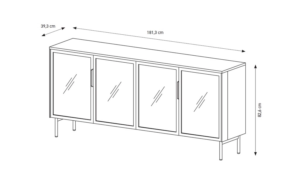 Komoda do salonu została zaprojektowana w sposób funkcjonalny i użytkowy, oferując dużo miejsca do przechowywania. Wykonanie korpusu z wysokiej jakości płyty laminowanej o grubości 16mm zapewnia trwałość i stabilność komody, co gwarantuje długotrwałą satysfakcję z użytkowania. Nietypowe wykończenie drzwi szkłem ryflowanym Flutes nada komodzie nieco oryginalności co umożliwi ciekawe zaaranżowanie każdej przestrzeni. Smukła podstawa oraz uchwyty wykonane zostały z metalu.