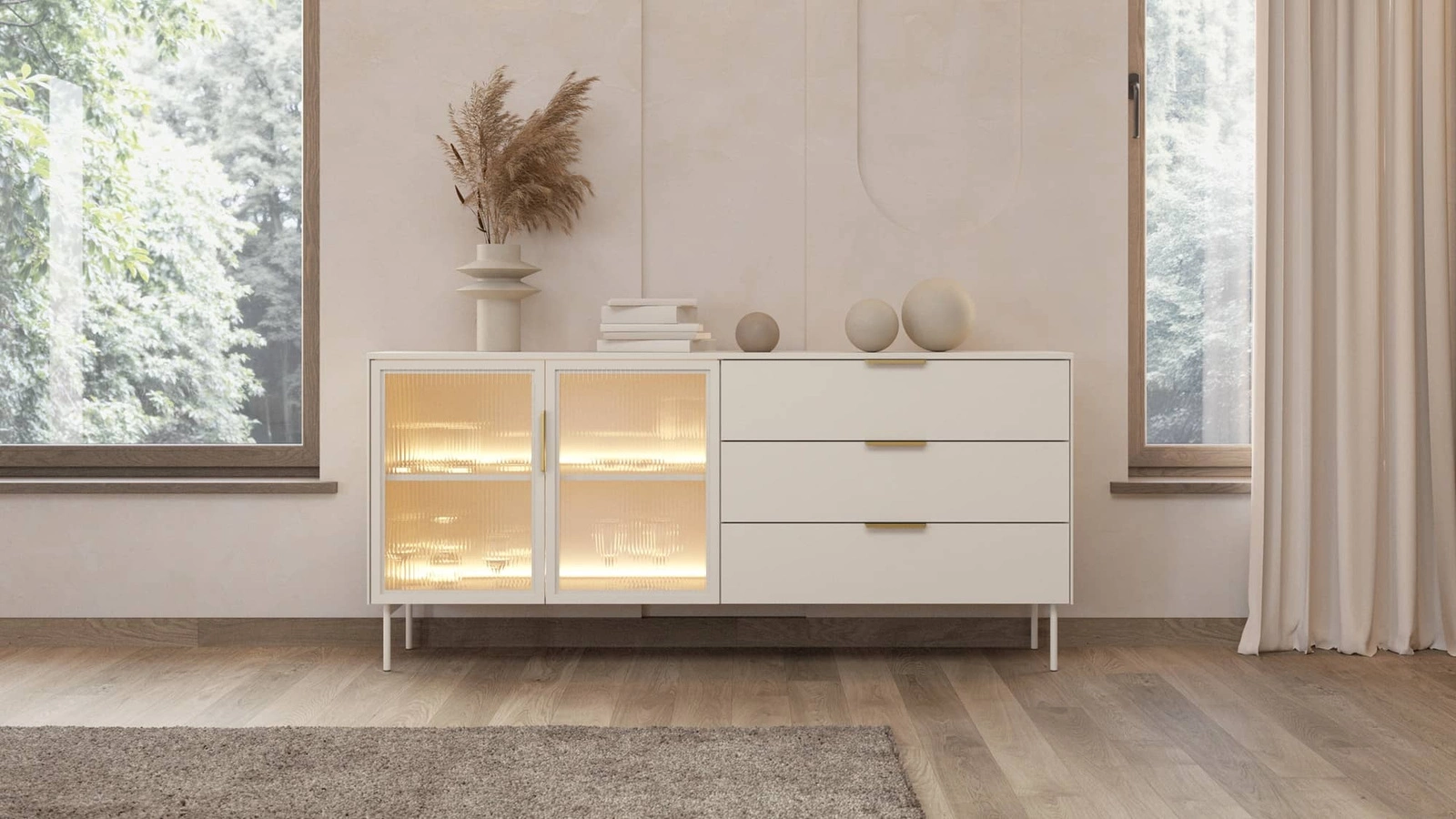 Komoda z szufladami 181 cm Lumi w kolorze beżowym to idealny mebel dla miłośników oryginalnych trendów wzorniczych.