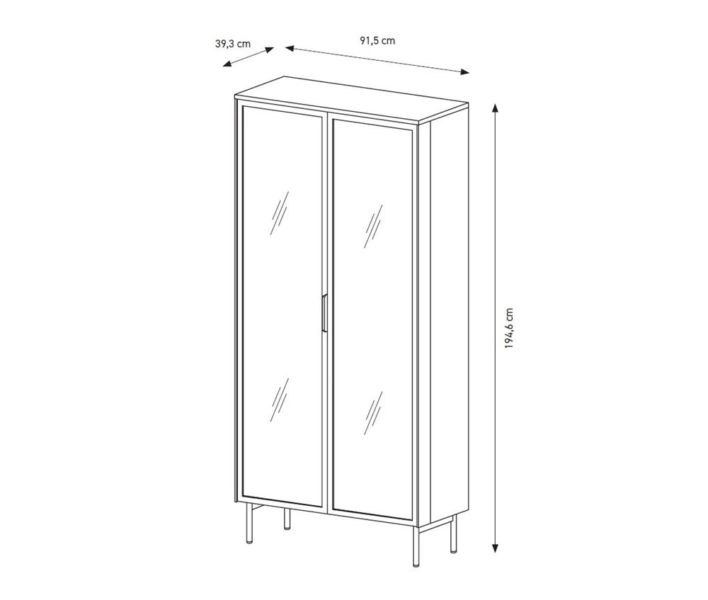 We wnętrzu witryny znajdują się także dwie szuflady otwierane za pomocą systemu push to open. Witryna została zaprojektowana w sposób funkcjonalny i użytkowy, oferując dużo miejsca do przechowywania. Wykonanie korpusu z wysokiej jakości płyty laminowanej o grubości 16mm zapewnia trwałość i stabilność witryny, co gwarantuje długotrwałą satysfakcję z użytkowania. Nietypowe wykończenie drzwi szkłem ryflowanym Flutes nada witrynie nieco oryginalności co umożliwi ciekawe zaaranżowanie każdej przestrzeni. Smukła podstawa oraz uchwyty wykonane zostały z metalu.