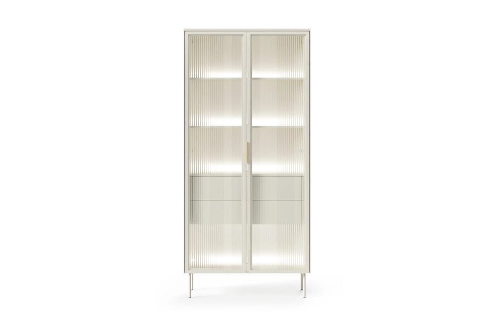 Witryna Lumi 92 cm beżowa designerska witryna z ryflowanym szkłem wewnętrzne szuflady z systemem push to open oświetlenie LED