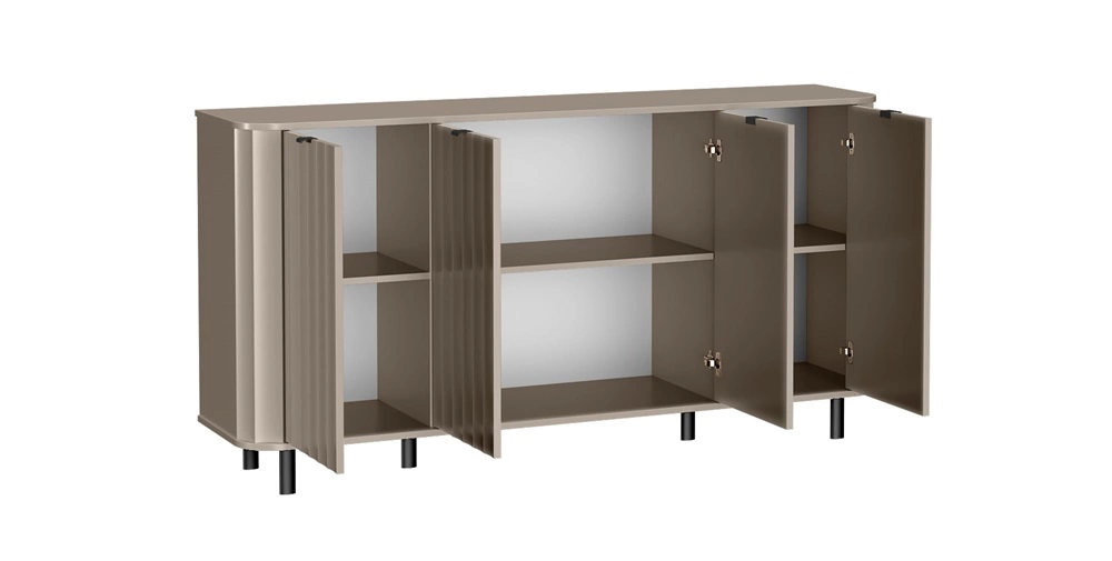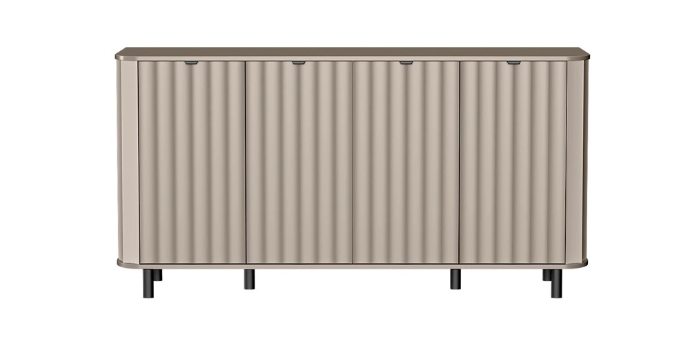 Komoda z kolekcji Novado to mebel, który łączy w sobie elegancję i funkcjonalność. Miękkie linie, zaokrąglone krawędzie blatów i dekoracyjny frezowany front w pionowe fale nadają wnętrzu harmonii i lekkości. Dzięki modnej kolorystyce w szaro beżowym odcieniu komoda Novado wpisuje się w różne style aranżacyjne, od nowoczesnych po minimalistyczne w duchu soft modern. Niewielkie, metalowe uchwyty krawędziowe oraz smukłe nogi w kolorze czarnym dodają industrialnego akcentu. Komoda Novado nie tylko zdobi wnętrze, ale również porządkuje i organizuje przestrzeń.