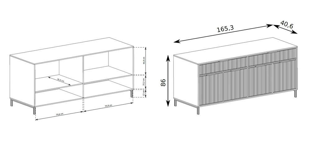 - Komoda Linka to bardzo elegancki i oryginalny mebel. Geometryczny kształt, ryflowane fronty oraz stylowe uchwyty krawędziowe stanowią nietuzinkowe wykończenie bryły. Wysoka podstawa sprawia, że komoda prezentuje się bardzo szykownie.