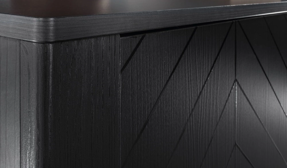 Szafa Malumi 90 cm czarna nowoczesny design wyrafinowany wzór w kształcie jodełki na drzwiach szafy wysoka podstawa push to open