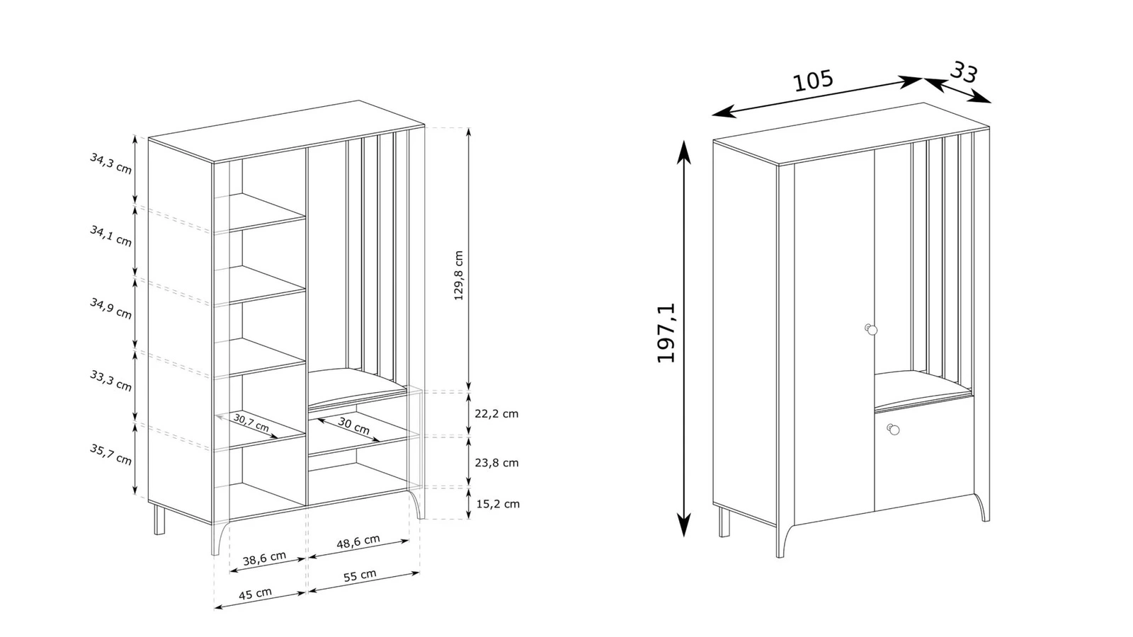 Garderoba Malumi jest nie tylko praktyczna, ale również estetycznie dopasuje się do każdego wnętrza.