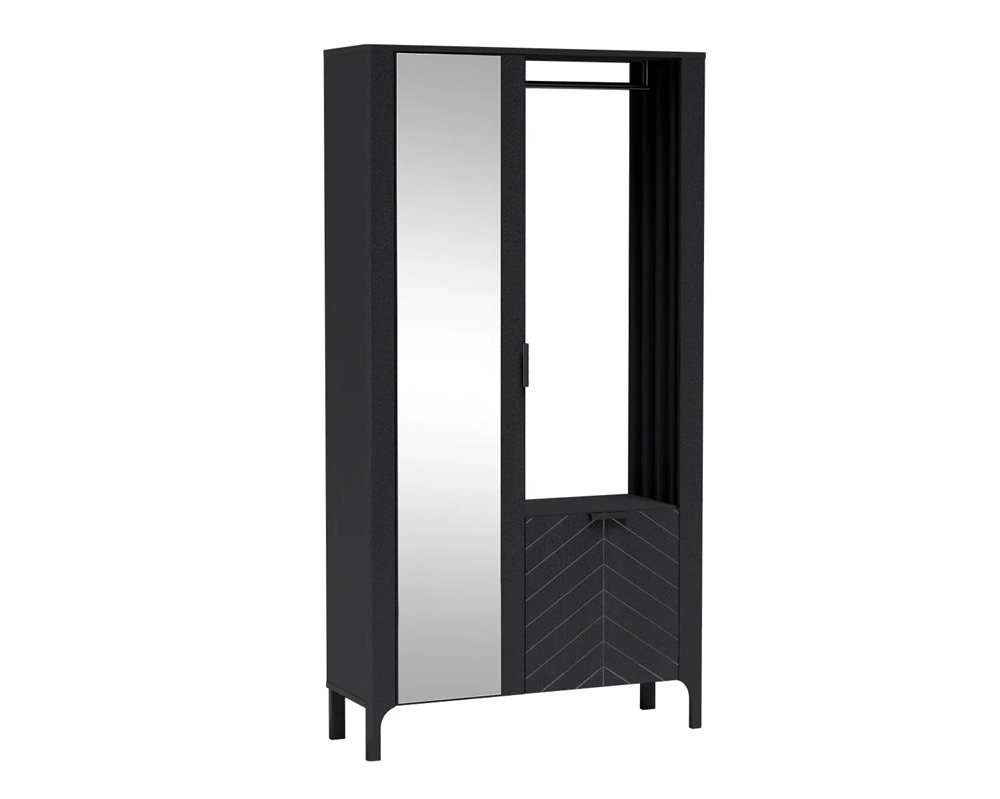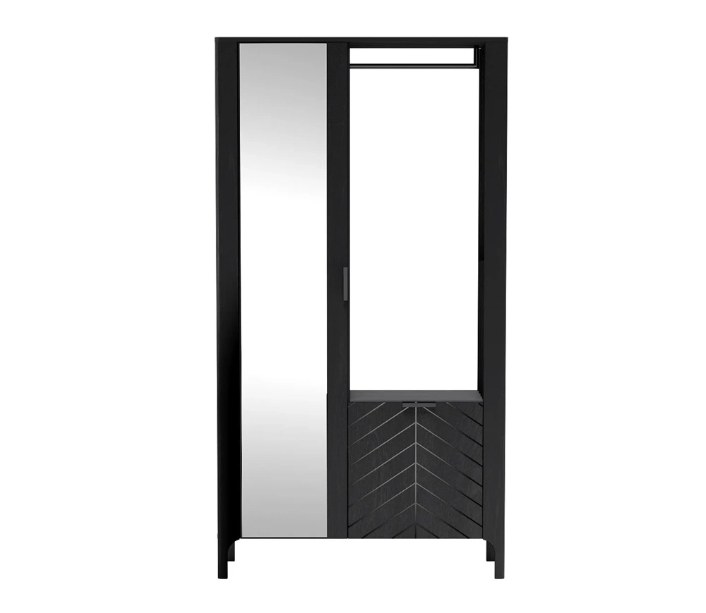 Garderoba Malumi 105 cm czarna funkcjonalna garderoba do przedpokoju w stylu skandynawskim duże lustro ozdobny dekor jodełki