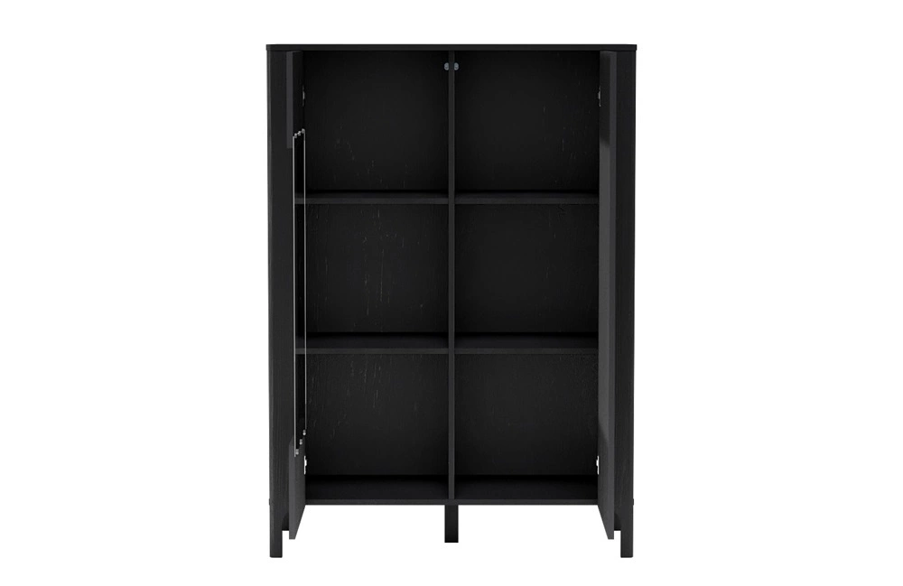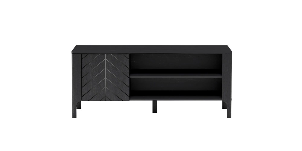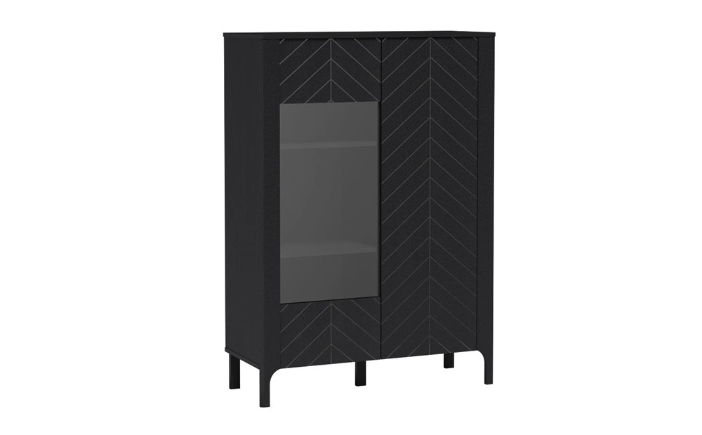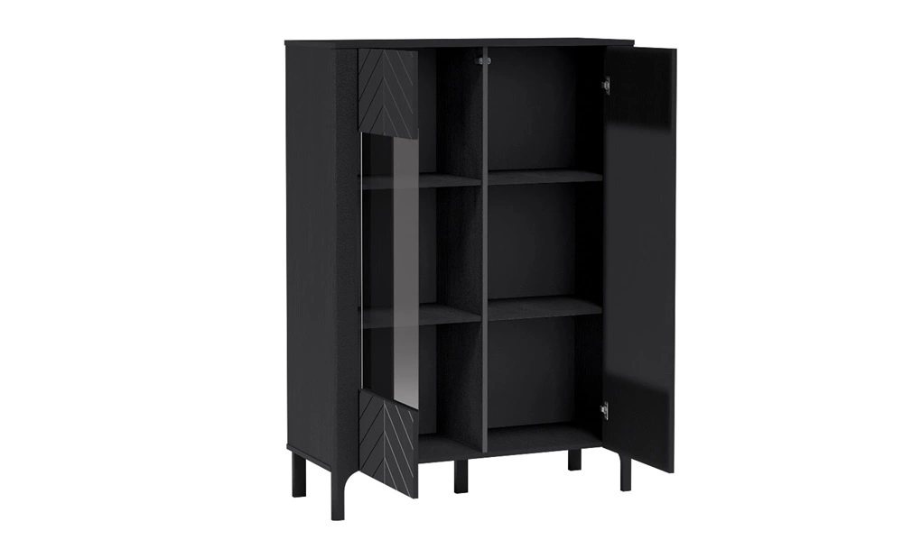 Zestaw mebli Malumi to eleganckie i funkcjonalne bryły w kolorze głębokiej czerni, które doskonale wpasują się w nowoczesne wnętrza. Wyrafinowany, subtelny wzór jodełki na frontach mebli w połączeniu z minimalistycznymi uchwytami sprawia, że całość prezentuje się bardzo modnie oraz podkreśla stylowy charakter aranżacji. Smukłe, ale solidne nóżki nadają lekkości, a jednocześnie zapewniają stabilność. Meble Malumi to idealna propozycja zarówno do salonu, sypialni, jak i przedpokoju.