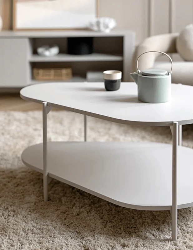 Stolik kawowy z kolekcji Malumi to elegancki i funkcjonalny mebel w kolorze beżu o kaszmirowym odcieniu, który doskonale wpasuje się w nowoczesne wnętrza. Nietuzinkowy kształt oraz dwupoziomowa konstrukcja zapewniają nie tylko estetyczny wygląd, ale także praktyczne rozwiązanie do przechowywania. Oryginalna forma o zaokrąglonych krawędziach sprawia, że stolik idealnie komponuje się z nowoczesnymi oraz industrialnymi aranżacjami.