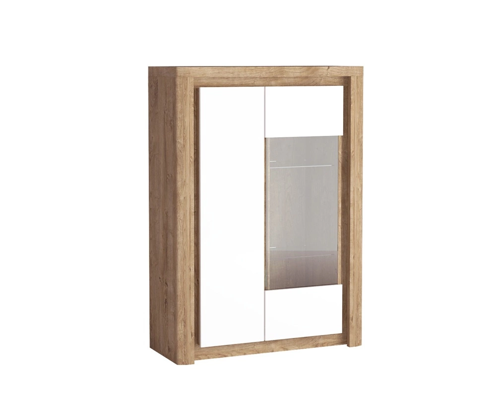 Witryna niska Livinio to mebel stworzony dla zwolenników ciepłych i lekkich aranżacji połączonych z nutą nowoczesności. Połączenie bieli z dębem ribbeck stworzy niesamowite i niepowtarzalne wnętrze. Głównym elementem przyciągającym wzrok jest delikatnie zaoblony kształt korpusu, gładkie fronty wykończone w połysku, które uwydatnia subtelne oświetlenie LED. Niepowtarzalność oraz funkcjonalność witryny na książki Livinio decyduje o mnogości zastosowań aranżacyjnych, od nowoczesnych przestrzeni po te urządzone w stylu klasycznym.