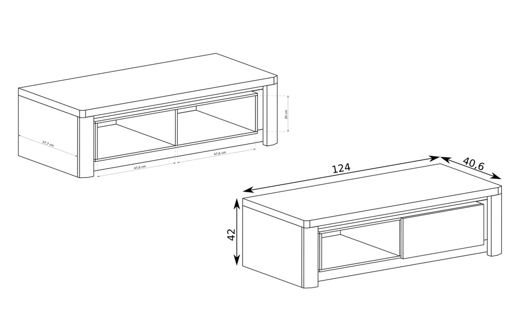 Jedna zamykana klapa ukrywa pojemny schowek, pozwalając na utrzymanie porządku i przechowywanie niezbędnych rzeczy. Wnęka po lewej stronie szafki pod telewizor to doskonałe miejsce na dekoder, konsolę lub sprzęt muzyczny. Szafka RTV do salonu Livinio została wykonana z wysokiej jakości płyty laminowanej. Ozdobna, subtelnie zaoblona listwa wykonana jest z płyty MDF. Obrzeża witryny wykończone okleiną ABS. Użyte do produkcji materiały charakteryzują się odpornością na wpływ czynników zewnętrznych takich jak obicia, uderzenia i niefortunne zadrapania.