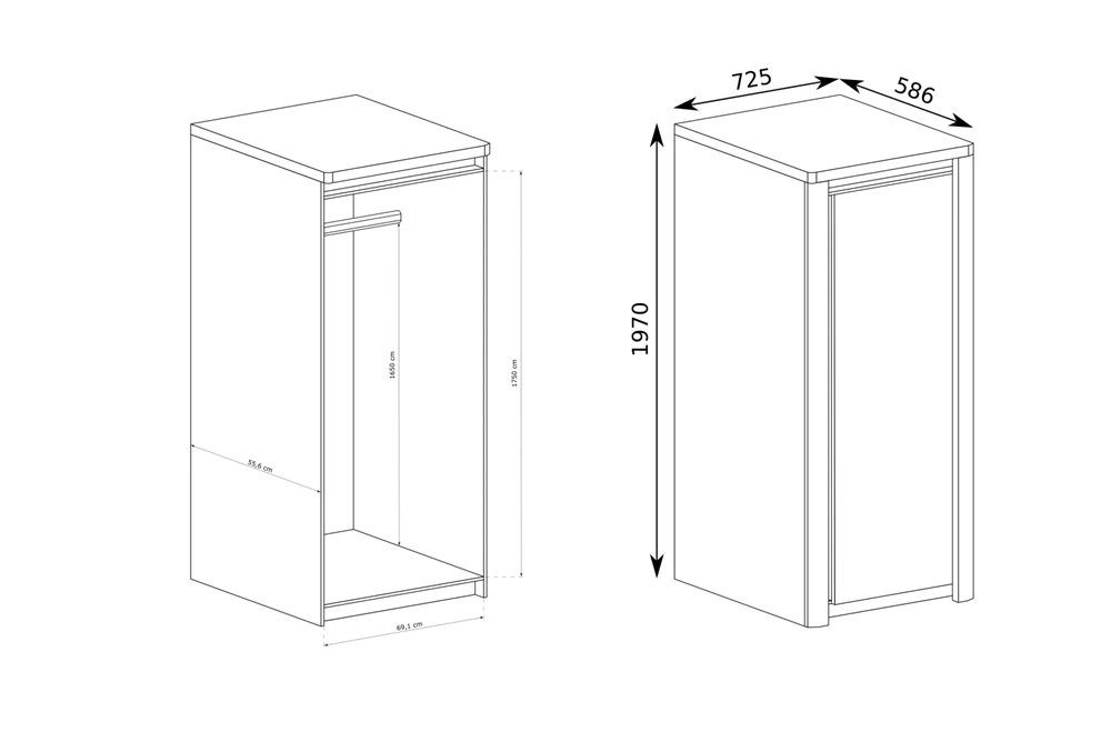 Szafa została zaprojektowana w sposób funkcjonalny i użytkowy, oferując dużo miejsca do przechowywania. Wnętrze szafy zostało podzielone na część z drążkiem na ubrania wiszące. Użyte połączenie kolorów sprawia, że szafa na ubrania z powodzeniem sprawdzi się jako szafa do sypialni, jako szafa do przedpokoju lub szafa do pokoju dziecięcego. Szafy do pokoju Livinio doskonale sprawdzą się także w roli garderoby do przedpokoju.