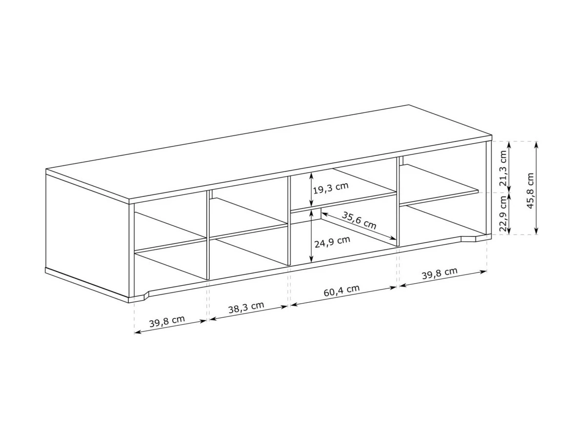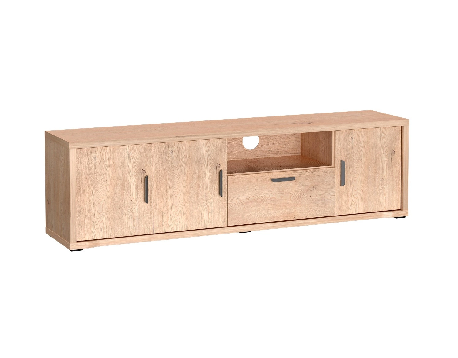 Szafka RTV wykonana została z wysokiej jakości płyty laminowanej o grubości 32mm, która charakteryzuje się odpornością na wpływ czynników zewnętrznych takich jak obicia, uderzenia i niefortunne zadrapani. Szafka pod telewizor Grand została zaprojektowana w sposób funkcjonalny i użytkowy, oferując dużo miejsca do przechowywania. Pojemna szuflada oraz zamykane szafki pomieszczą wszystkie rzeczy oraz niezbędne akcesoria. Wnęka w szafce RTV jest świetnym miejscem na sprzęt rtv lub konsolę do gier.