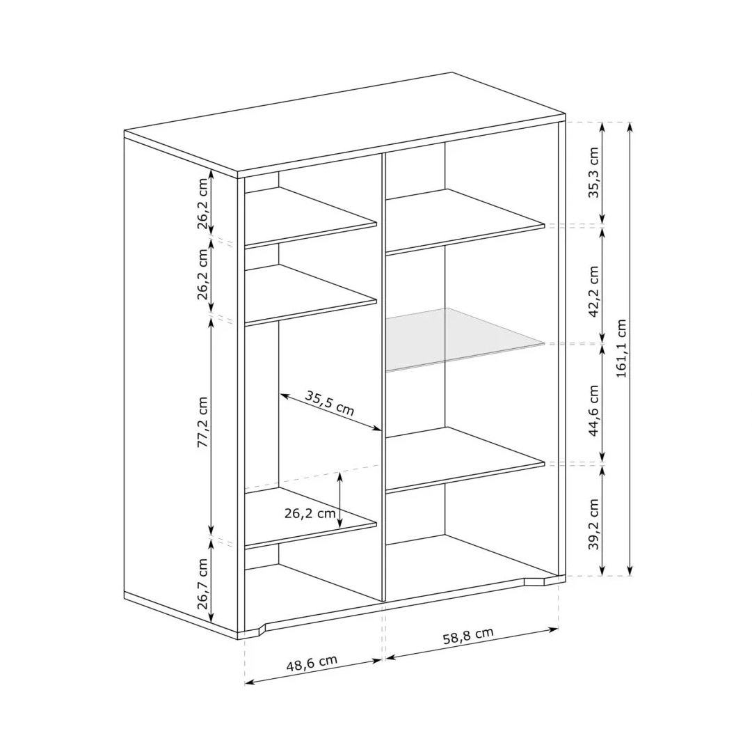 Witryna szeroka do salonu wykonana została z wysokiej jakości płyty laminowanej o grubości 32mm, która charakteryzuje się odpornością na wpływ czynników zewnętrznych takich jak obicia, uderzenia i niefortunne zadrapani. Przeszklony front witryny pozwoli wyeksponować dodatki stanowiące dekorację salonu. Przeszklony front oraz szklane półki wykonane są z bezpiecznego szkła hartowanego. Witryna szeroka Grand została zaprojektowana w sposób funkcjonalny i użytkowy, oferując dużo miejsca do przechowywania. Witryna na książki gwarantuje komfortowe i bezproblemowe korzystanie oraz trwałość całego mebla przez wiele lat użytkowania.