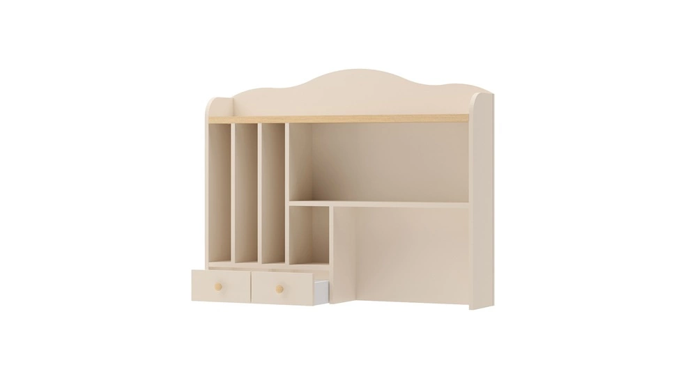 Sekretarzyk jest skonstruowany z otwartych półek oraz 2 małych szuflad. Dodatek do biurka wykonany został z wysokiej jakości płyty laminowanej, która charakteryzuje się odpornością na wpływ czynników zewnętrznych takich jak obicia, uderzenia i niefortunne zadrapania. Dzięki lekkiej formie oraz uniwersalności nadstawka do biurka dla dziecka Story to świetna alternatywa do regałów na książki lub półek wiszących. Biurka dla dziewczynki z nadstawką w formie sekretarzyka odnajdą się również jako toaletka, która ułatwi uporządkowanie dziewczęcych kosmetyków i drobiazgów.