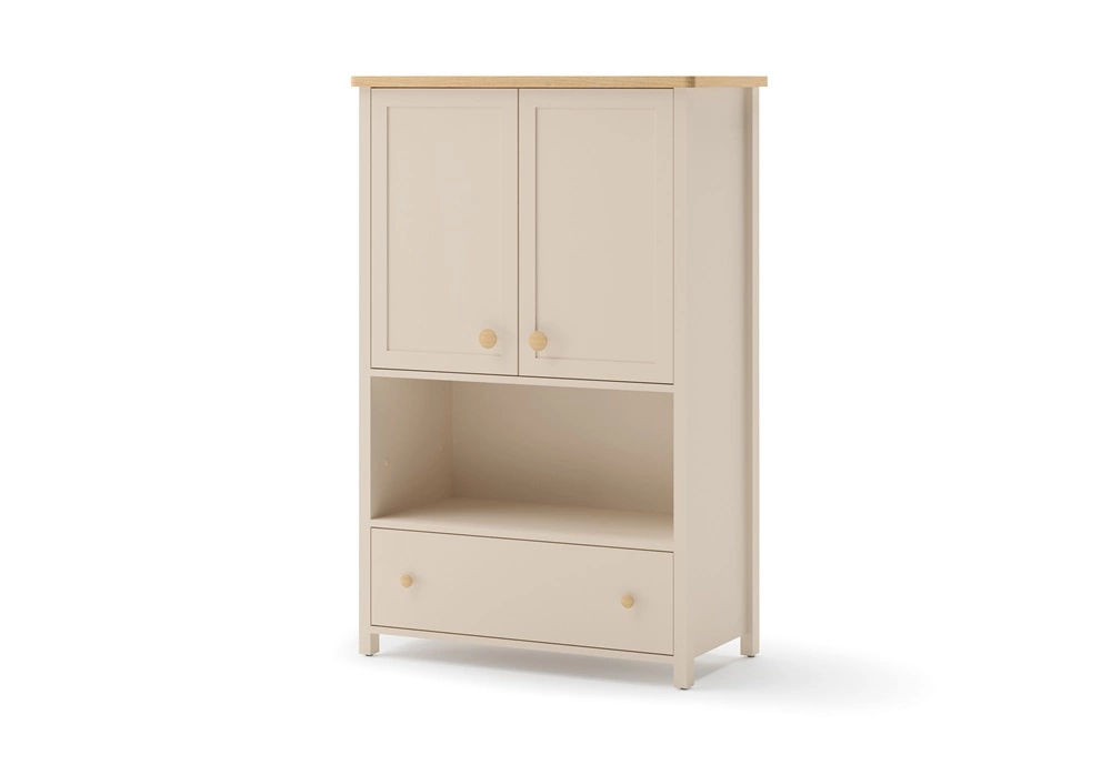 Komoda wysoka Story 85 cm beżowy / dąb vincenza bielona komoda z szufladą elegancki design połączony z wysoką jakością wykonania