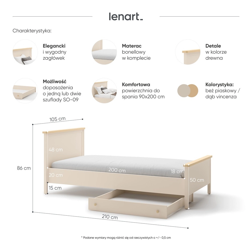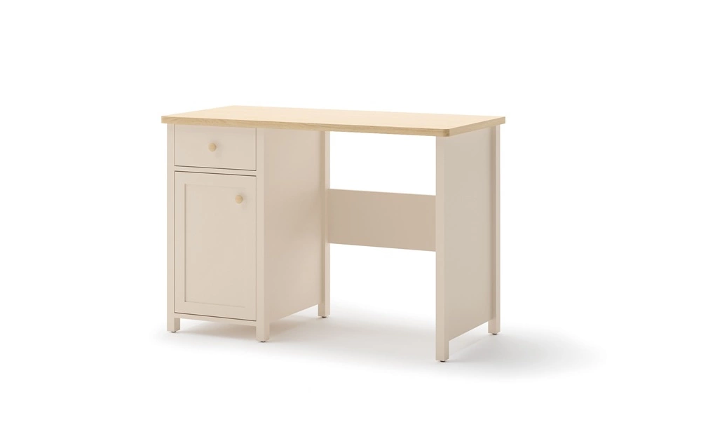 Zestaw mebli Story to eleganckie i bardzo łatwe w aranżacji bryły pasujące do różnych stylów wykończenia wnętrza dla dzieci i młodzieży. Subtelne połączenie beżu w piaskowym odcieniu z dębem vincenza stworzy estetyczne i niezwykle ciepłe wnętrze, idealnie wpisujące się w gust każdego młodszego lub nieco starszego dziecka. Gładkie fronty z charakterystycznymi ramami oraz niewielkie uchwyty w kolorze blatu doskonale oddają nowoczesny charakter mebli oraz nadają kolekcji Story nieco oryginalności. Oprócz aspektów wizualnych meble wyróżniają się także funkcjonalnością i łatwością w użytkowaniu.