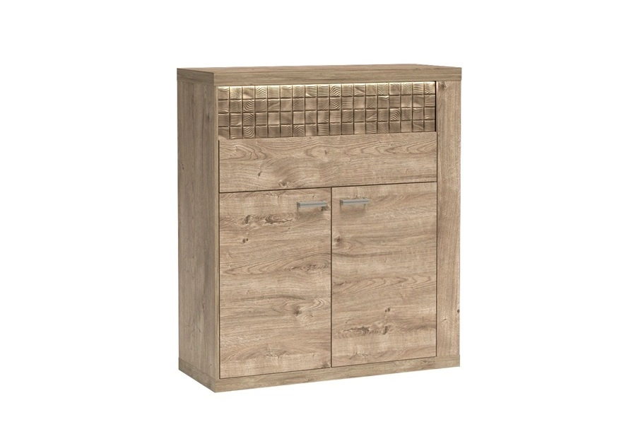 Komoda z szufladami Natural to mebel stworzony dla fanów ciepłych i lekkich aranżacji w modnym stylu boho. Naturalne wykończenie podkreślone ciepłą barwą dębu ribbeck stworzy niesamowite i niepowtarzalne wnętrze. Głównym elementem przyciągającym wzrok jest ozdobna listwa zdobiąca front szuflady wykonana z drewna sosnowego, którą uwydatnia subtelne oświetlenie LED. Niepowtarzalność oraz funkcjonalność komody z szufladami Natural decyduje o mnogości zastosowań aranżacyjnych, od nowoczesnych przestrzeni po te urządzone w stylu skandynawskim lub boho.