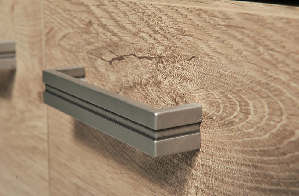 Komoda do salonu wyposażona jest w system cichego domykania drzwi. Szuflady otwierane są za pomocą bezuchwytowego systemu push to open. Zastosowane systemy zwiększają komfort codziennego użytkowania. Komoda z szufladami Natural została wykonana z wysokiej jakości płyty laminowanej. Obrzeża komody wykończone okleiną ABS. Użyte do produkcji materiały charakteryzują się odpornością na wpływ czynników zewnętrznych takich jak obicia, uderzenia i niefortunne zadrapania.