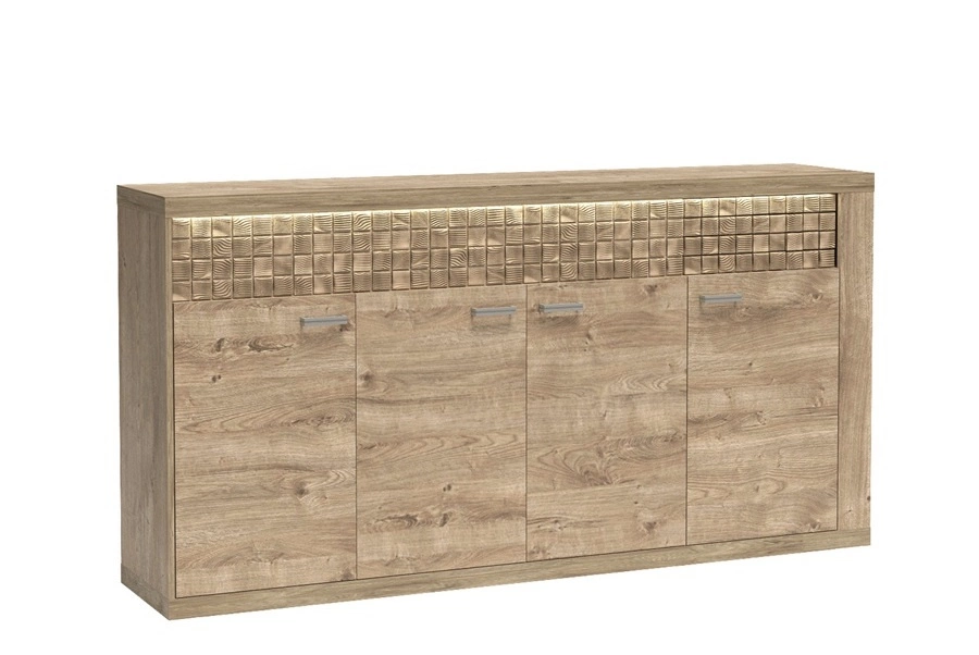 Komoda z szufladami Natural 192 cm dąb ribbeck naturalny i lekki design komody oświetlenie LED uwydatnia ozdobną drewniana listwę