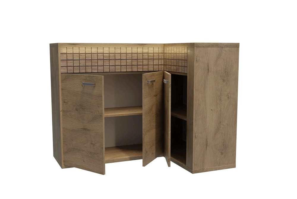 Komoda narożna Natural 132x96 cm dąb ribbeck designerska komoda z szufladami i oświetleniem LED dekoracyjna drewniana listwa