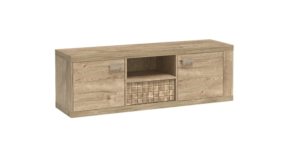 Szafka pod telewizor do salonu została zaprojektowana w sposób funkcjonalny i użytkowy, oferując dużo miejsca do przechowywania. Ciepłe wybarwienie dębu ribbeck sprawia, że szafki RTV Natural świetnie sprawdzą się w przestronnych, jasnych wnętrzach w stylu nowoczesnym. Szafki RTV nowoczesne, szafki RTV skandynawskie oraz szafki RTV industrialne o eleganckim wykończeniu idealnie dopasują się do każdej aranżacji.