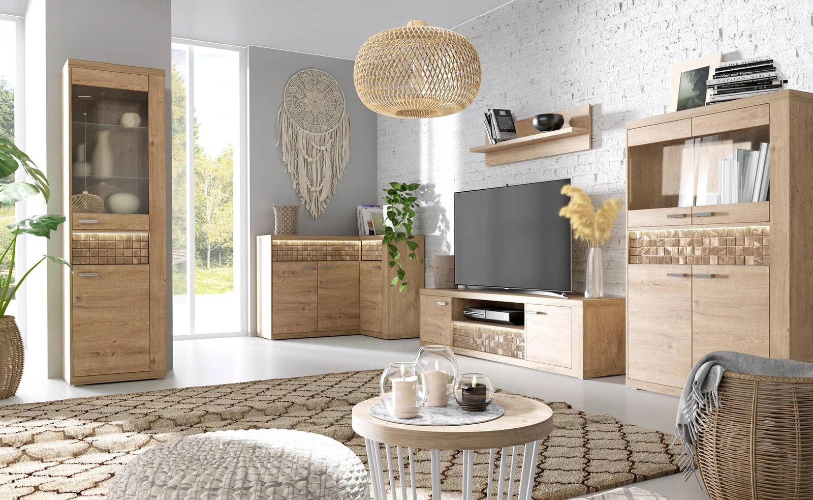 Stolik kawowy Natural to mebel stworzony dla fanów ciepłych i lekkich aranżacji w modnym stylu boho. Naturalne wykończenie podkreślone ciepłą barwą dębu ribbeck stworzy niesamowite i niepowtarzalne wnętrze. Klasyczny design oraz dwupoziomowa konstrukcja zapewniają nie tylko estetyczny wygląd, ale także praktyczne rozwiązanie do przechowywania. Niepowtarzalność oraz funkcjonalność ławy Natural decyduje o mnogości zastosowań aranżacyjnych, od nowoczesnych przestrzeni po te urządzone w stylu skandynawskim lub boho.