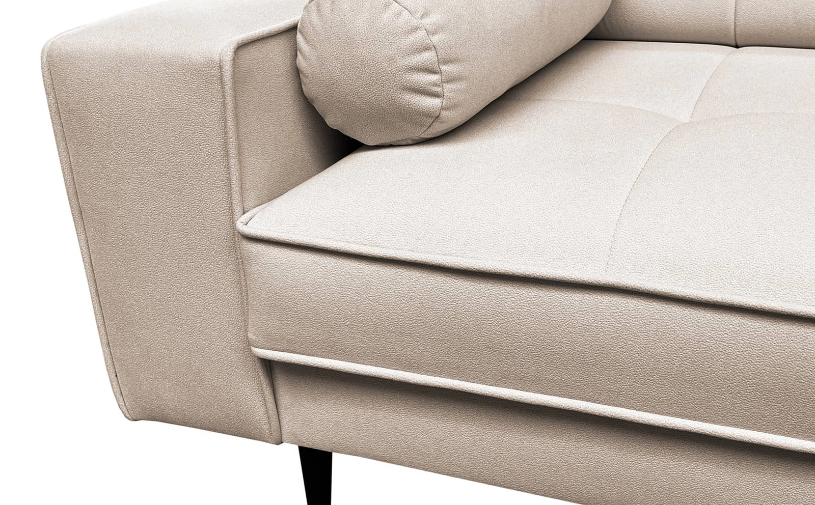 Narożnik Samos to doskonałe rozwiązanie dla osób poszukujących uniwersalnego mebla, który łączy funkcjonalność z elegancją, zapewniając przy tym nowoczesny wygląd i wygodę użytkowania przez długi czas. Lekka konstrukcja narożnika w całości została pokryta dzianinową tkaniną Sand 100. Tkanina obiciowa Sand to wysokiej jakości materiał, który wyróżnia się subtelną, ziarnistą strukturą, dostosowaną do eleganckiego i nowoczesnego wyglądu każdego mebla. Materiał obiciowy Sand jest trwały i wytrzymały, charakteryzuje się także odpornością na mechacenie i płowienie, dzięki temu przez długi czas utrzymuje nienaganny wygląd. Szeroka gama kolorystyczna pozwala na zastosowanie do różnych wnętrz. Narożnik wykonany został z wysokiej jakości materiałów, które charakteryzują się odpornością na wpływ czynników zewnętrznych takich jak obicia mebla oraz różnego typu uderzenia.
