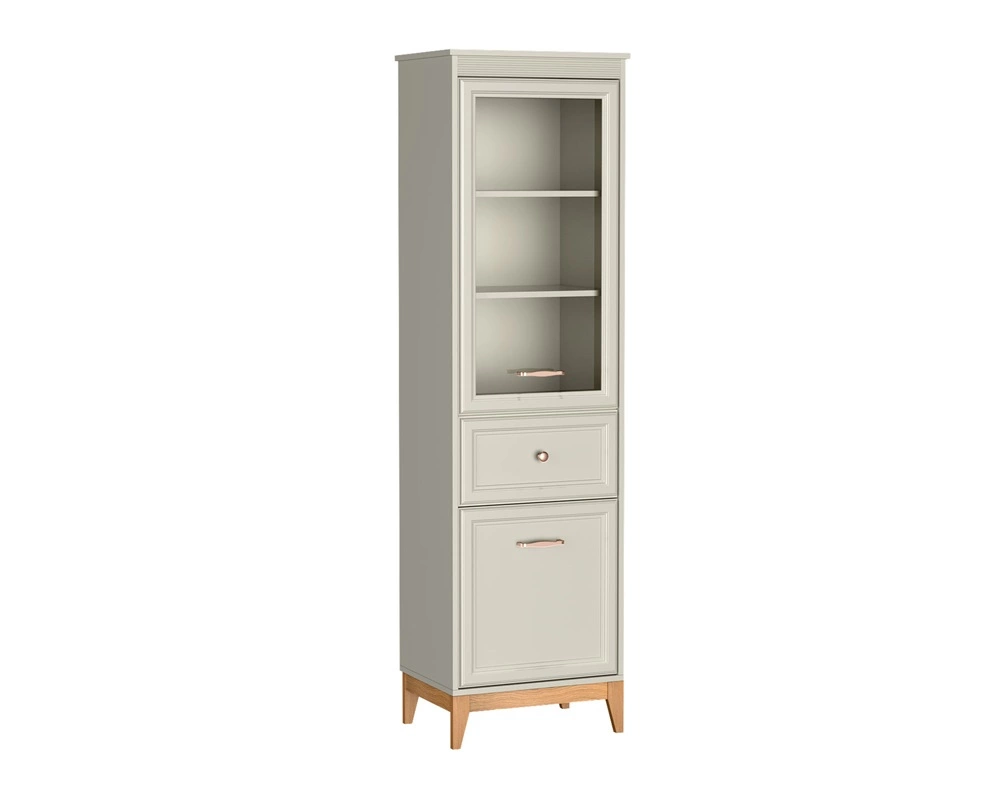 Witryna Windsor 55 cm beżowy / dąb wysoka witryna z szufladą w stylu klasycznym drewniana podstawa zapewnia stabilność