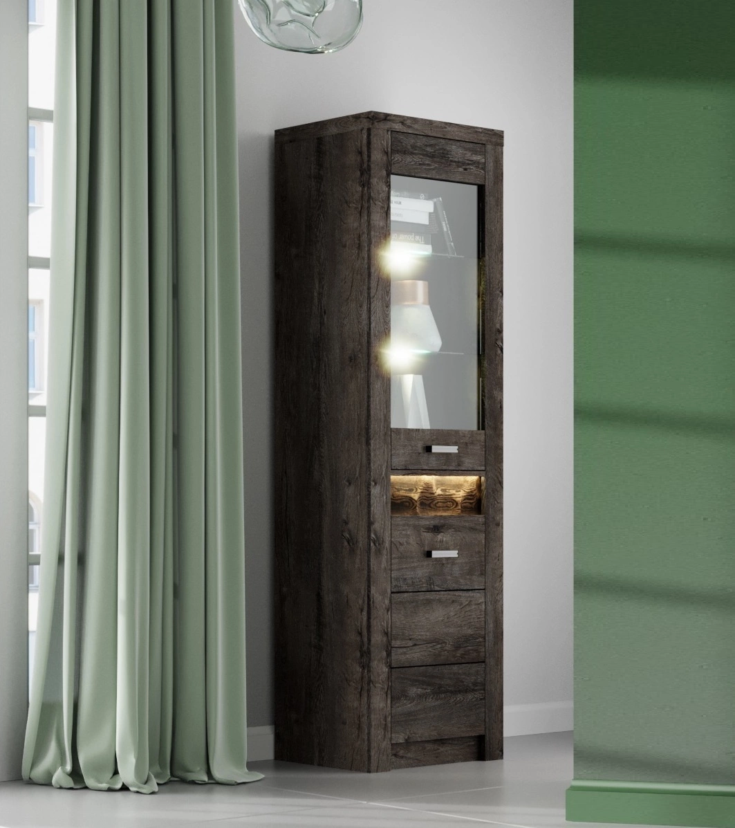 Witryna 56 cm Indiana w kolorze jesion ciemny to nowoczesny design mebla, który stanie się stylowym wykończeniem wnętrza.