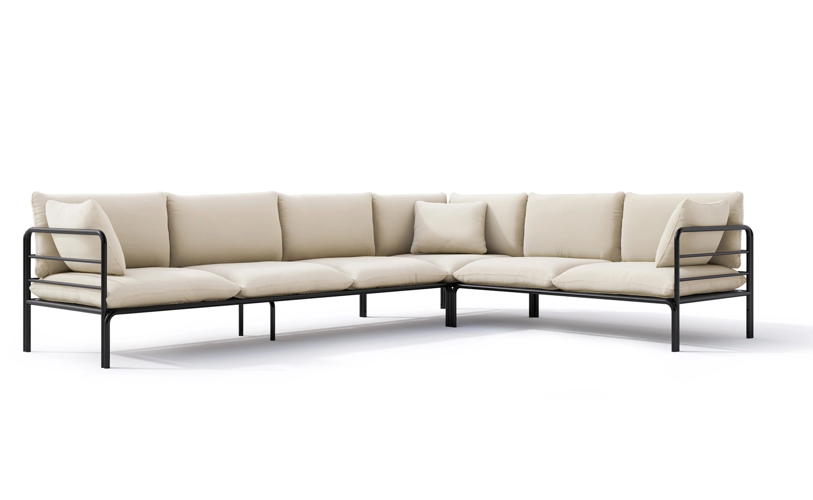 Wygodne poduszki na siedzisko wypełnione są wysokiej jakości pianką tapicerską T30, która zapobiega odkształceniom. Pianka o dużym stopniu gęstości wypełnia gustowne poduszki oparciowe gwarantując wysoki komfort podczas siedzenia. Dzięki uniwersalnej budowie narożnik ogrodowy metalowy może posłużyć jako narożnik do ogrodu, a także narożnik na taras.