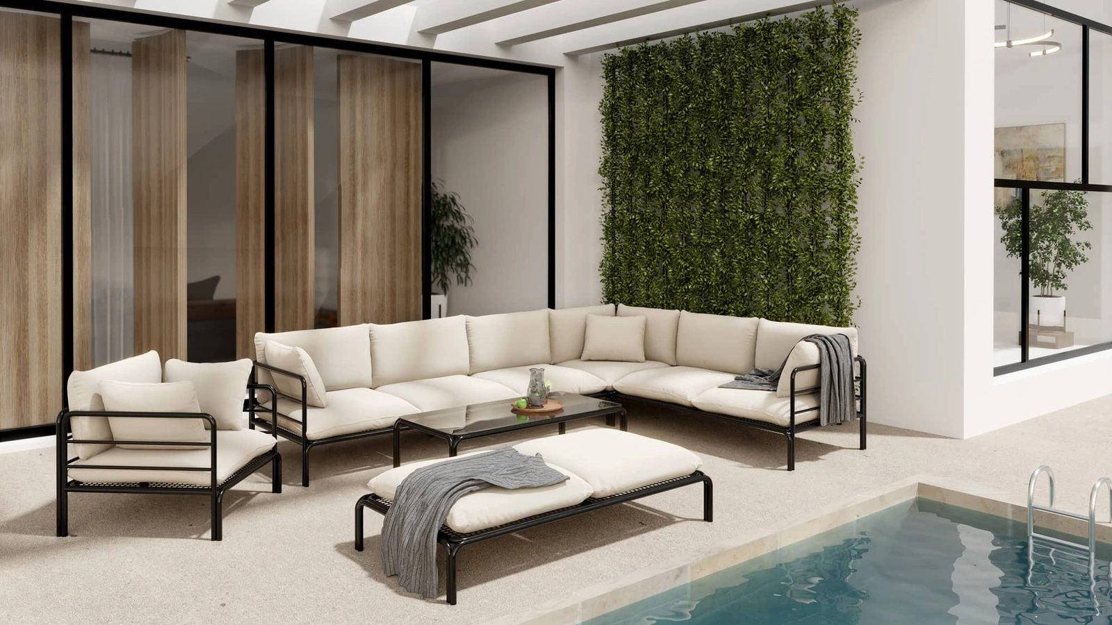 Tkanina Garden to mocny, wytrzymały, a przy tym przyjemny w dotyku materiał, idealny do mebli zewnętrznych. Charakteryzuje się wysoką odpornością na ścieranie oraz na wybarwienia powodowane przez zmienne warunki atmosferyczne. Tkanina Garden z właściwością Cleanaboo tworzy hydrofobową powłokę zabezpieczającą przed szybkim przesiąkaniem płynów, co zapobiega natychmiastowemu absorbowaniu cieczy przez tkaninę. Stelaż malowany proszkowo pozwala osiągnąć wysoki poziom estetyki i trwałości oraz powierzchni o zwiększonej odporności na zarysowania i uszkodzenia.